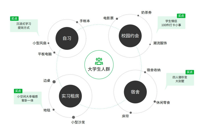 在产品和人群之间,还需要「买点」作为桥梁。因此,企业需要建立内容策略,具体来说,就是把握好「产品×买点×人群」三者的结合,这也是当下头部互联网企业普遍在实践的事。