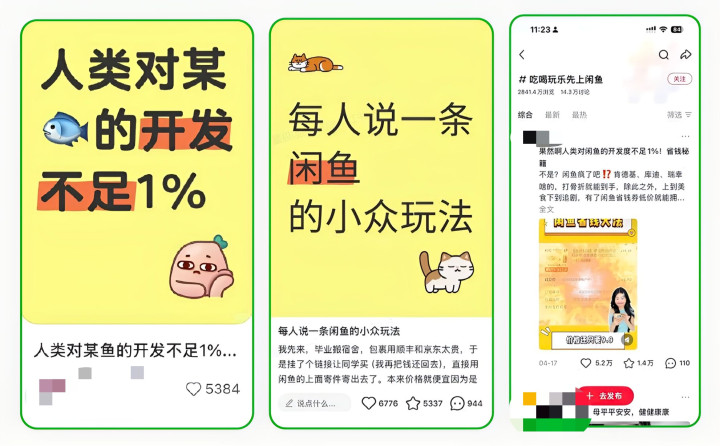 但在小红书上,每日600万+新增笔记中,一篇爆款小红书图文《人类对闲鱼开发度不足1%》出现了。人们开始交流各种超出传统二手交易的"神奇"用法: